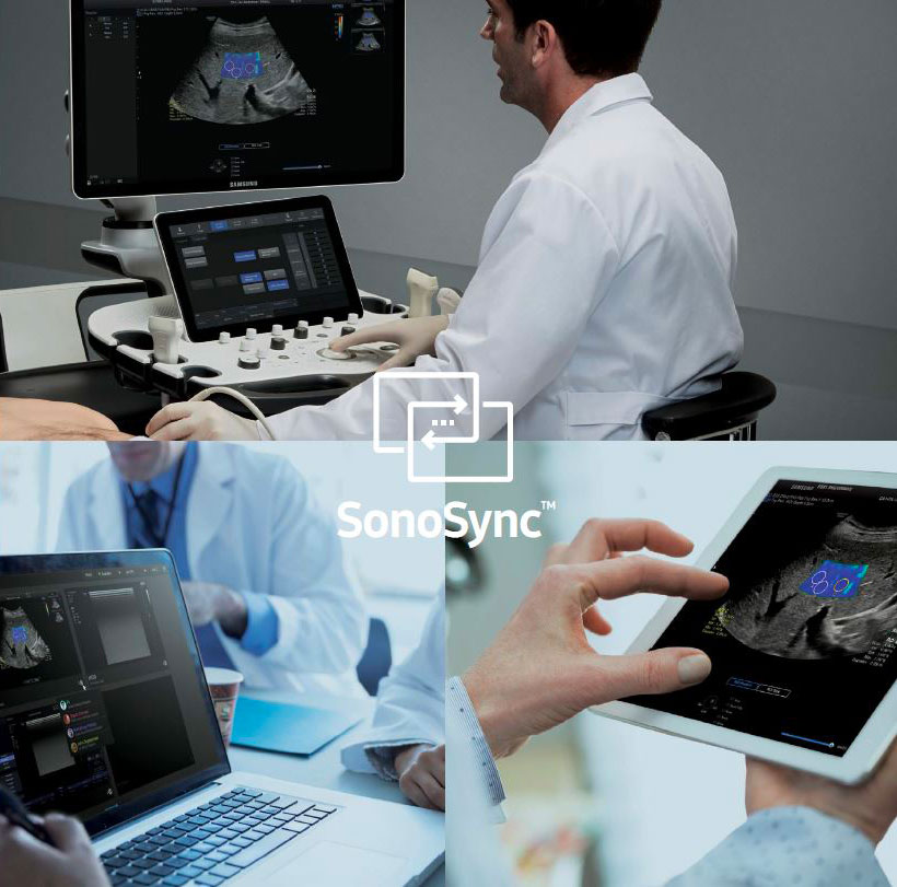 SonoSync™ est une solution de partage d’images échographiques à distance, sur tout type de support. Les fonctions chat audio, marquage en temps réel et affichage unique sur un seul écran (option MultiVue) favorisent une collaboration optimale et rapide entre plusieurs utilisateurs. SonoSync™ offre également la possibilité de bénéficier d’une téléassistance grâce à une prise en main de votre échographe à distance.